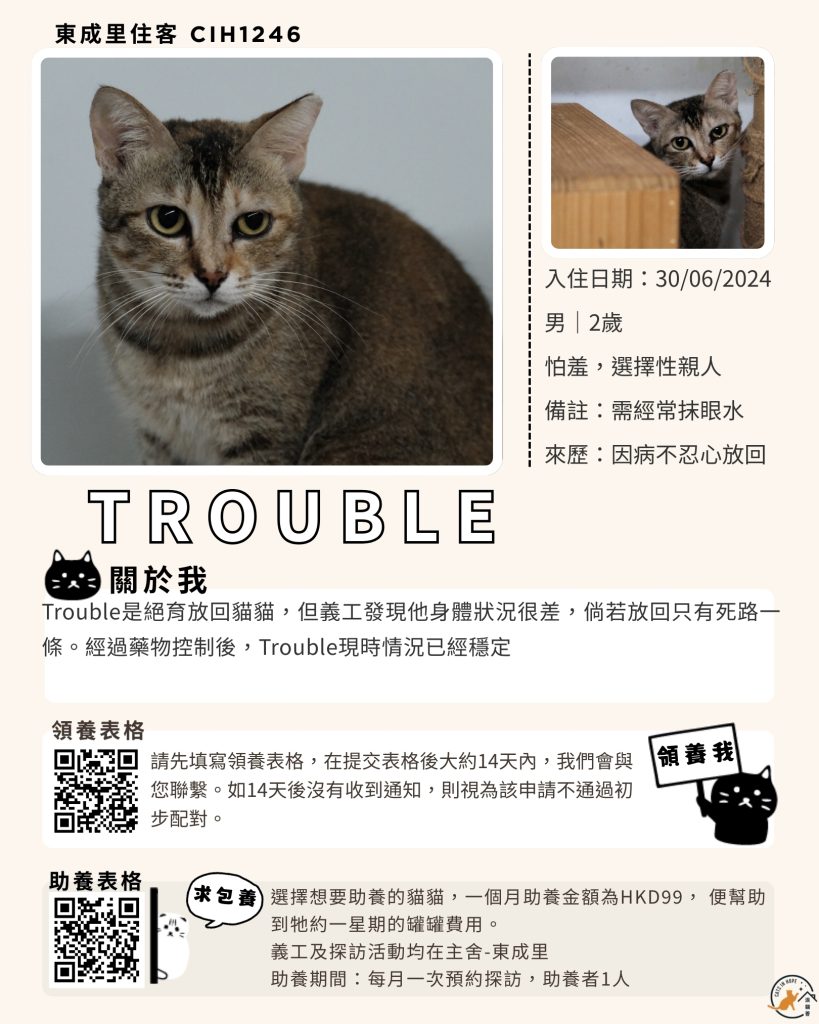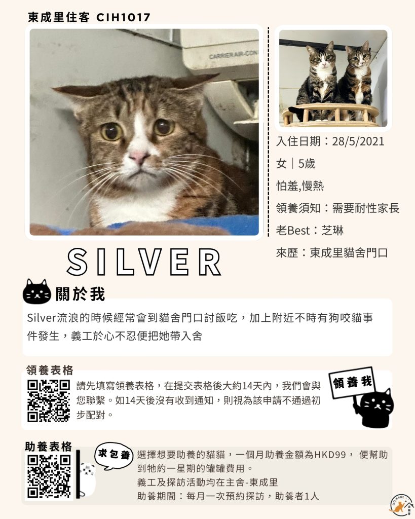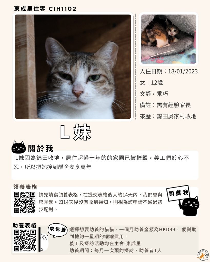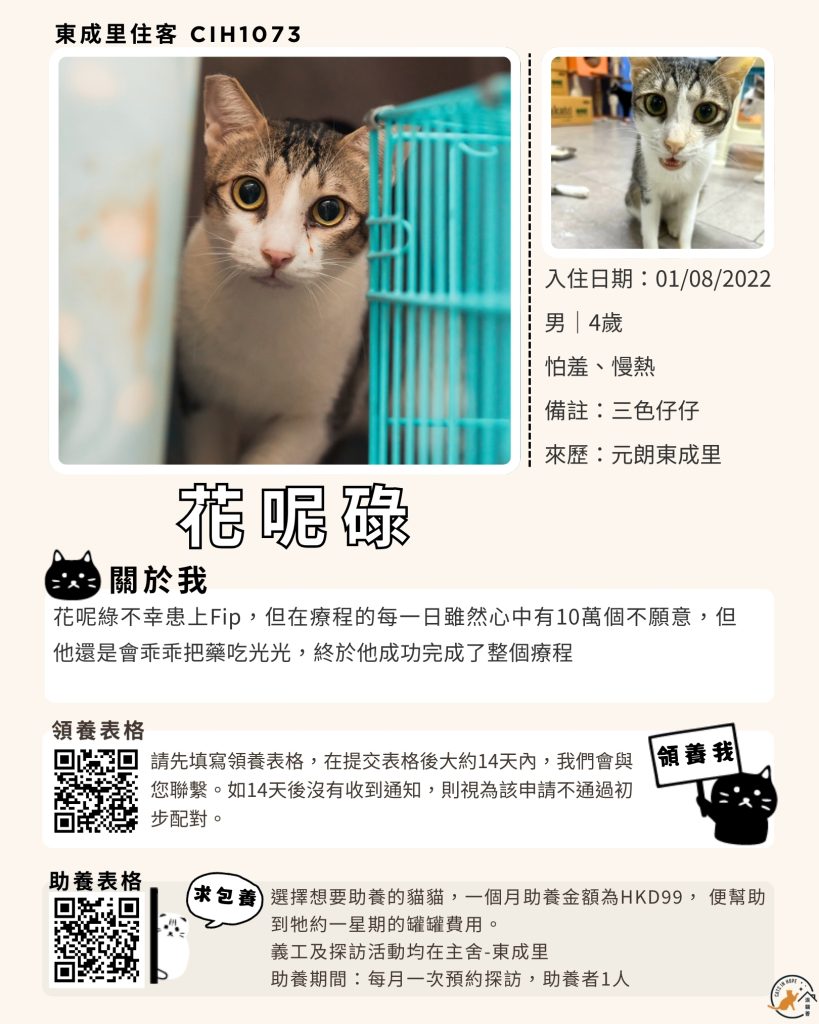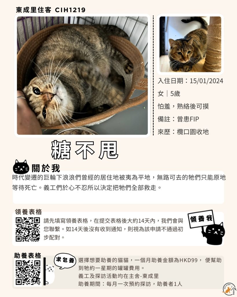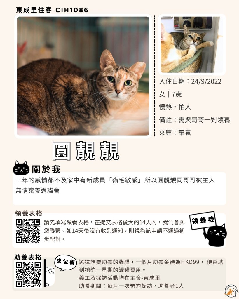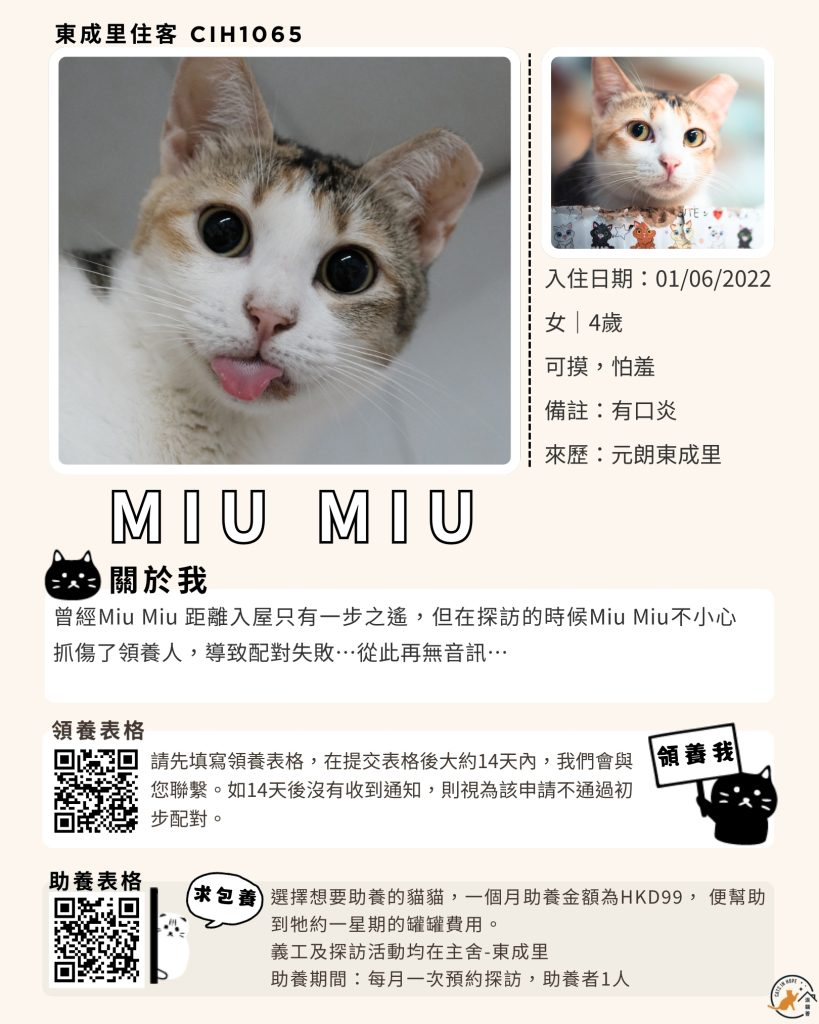 領養表格 助養表格 東成里住客 三色帶紋|三花色|玳瑁色 SILVER 三花 大咪 MIU MIU 點點 花呢碌 L妹 圓靚靚 芝琳 多寶 公主 美人 小咪 泰Q MANGO 糖不甩 TROUBLE 薯條 白雪 逗罐