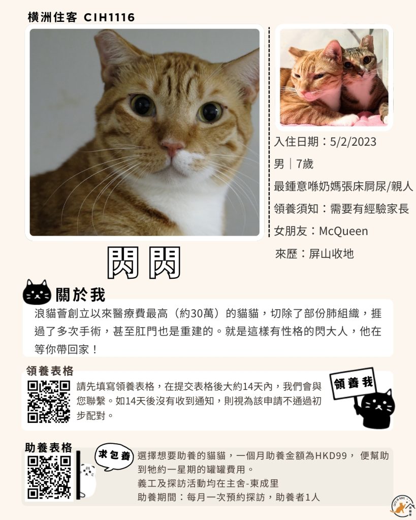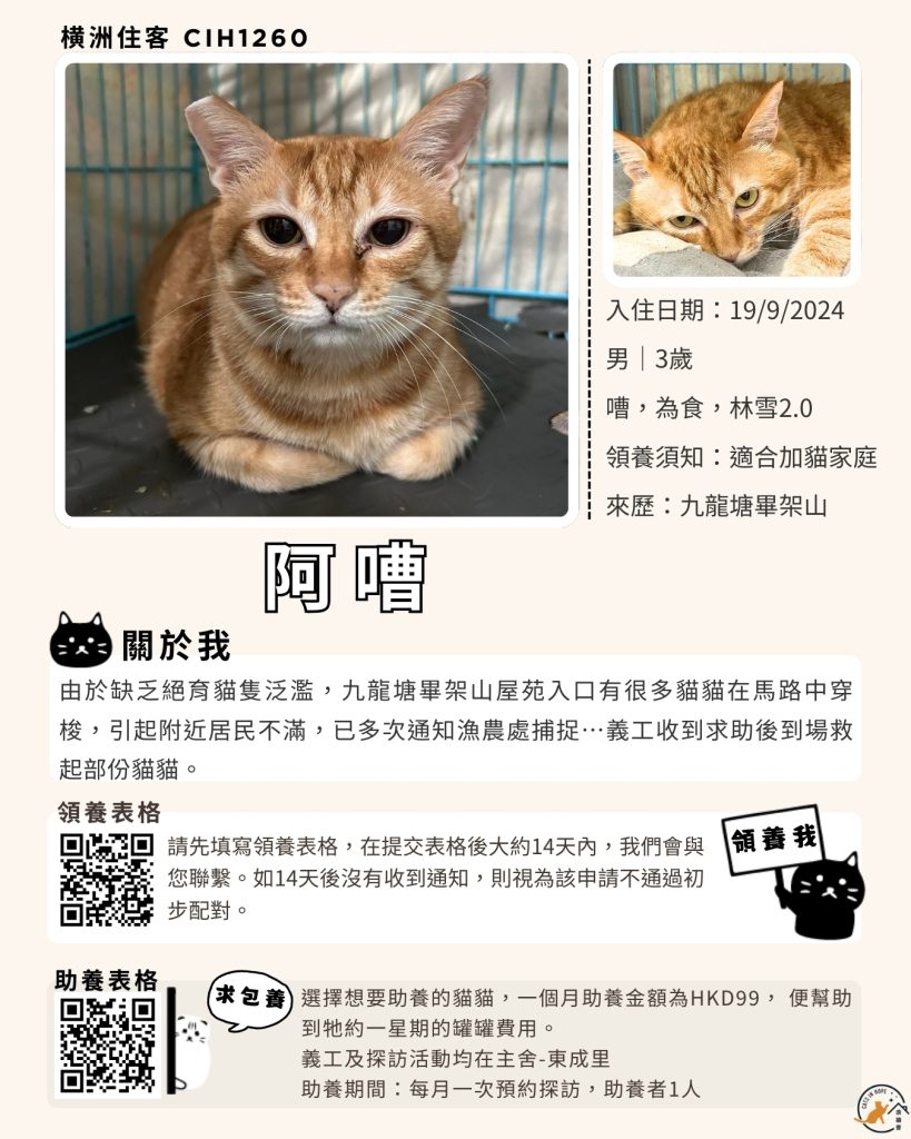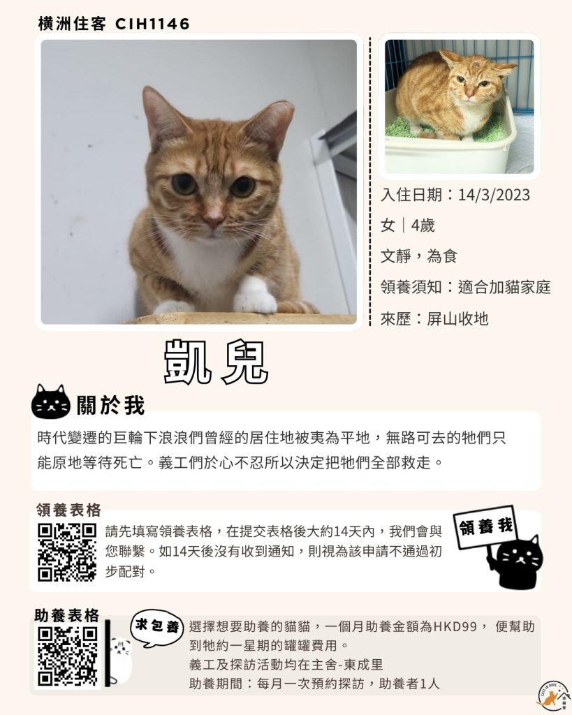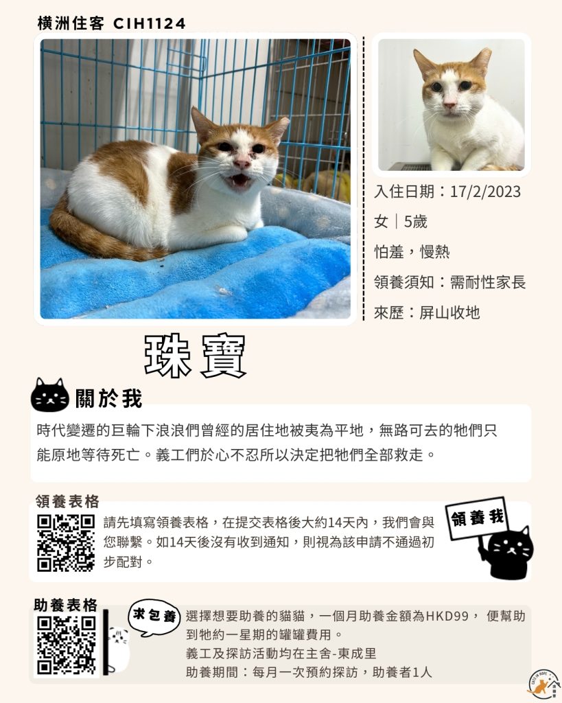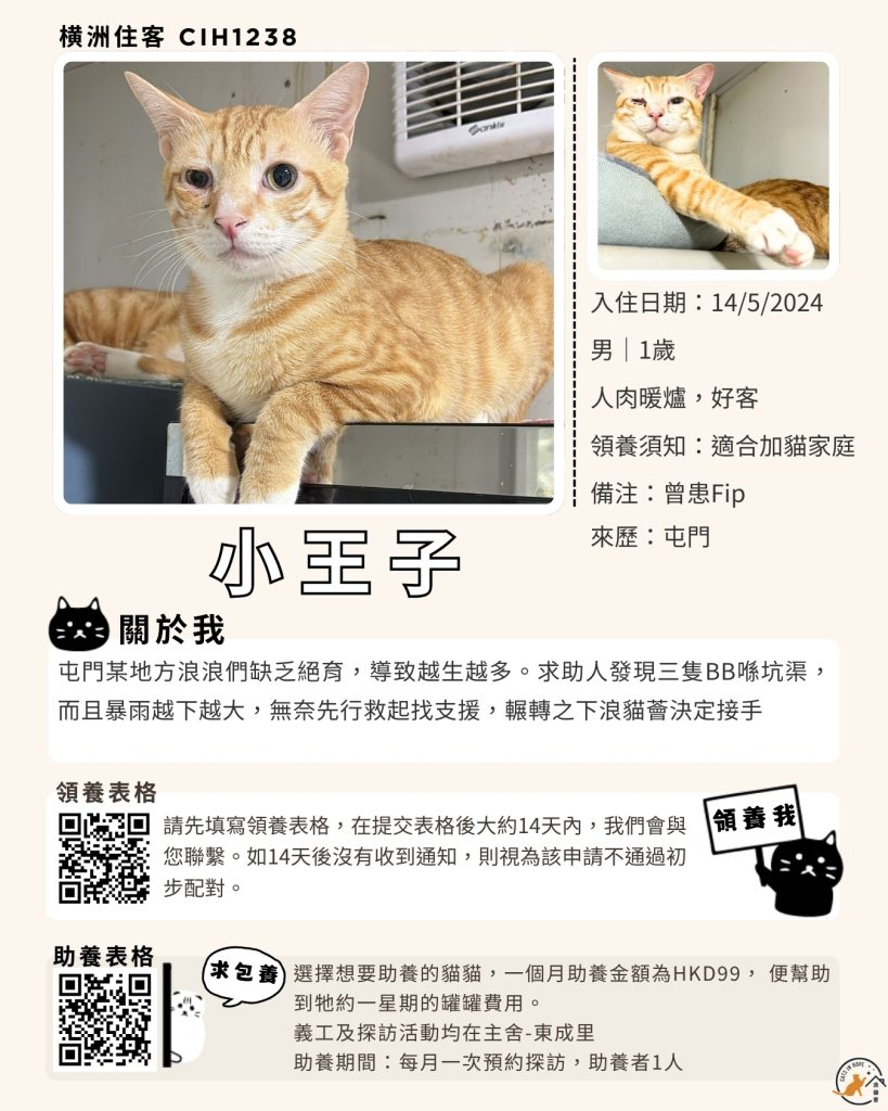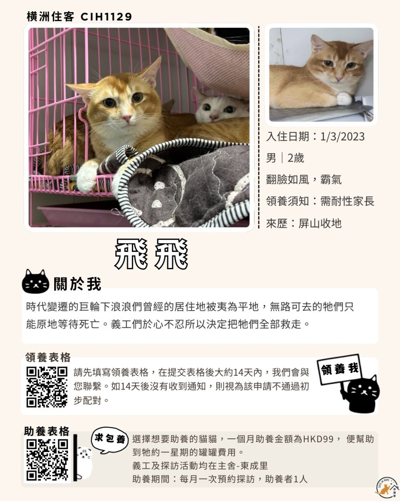 領養表格 助養表格 橫洲住客 橘色|橘白色 鹹蛋 奶油豬 瘦猛猛 閃閃 周星星 珠寶 金寶 飛飛 大眼仔 嘟嘟 TOYOTA 小雨 豬仔包 凱兒 三上 阿木 FOX BOBO 皮皮 右仔 MONKEY仔 黃生 小王子 阿嘈 阿呆 阿仔 阿TICK 道生 PIE PIE 金桔