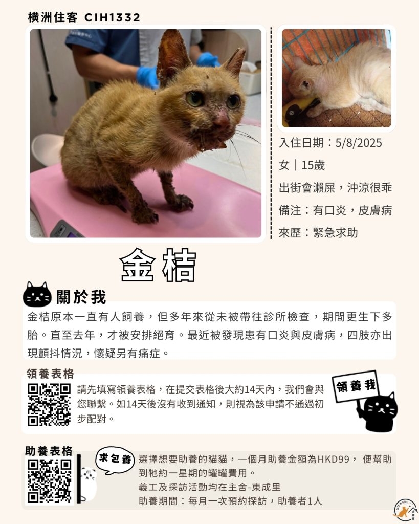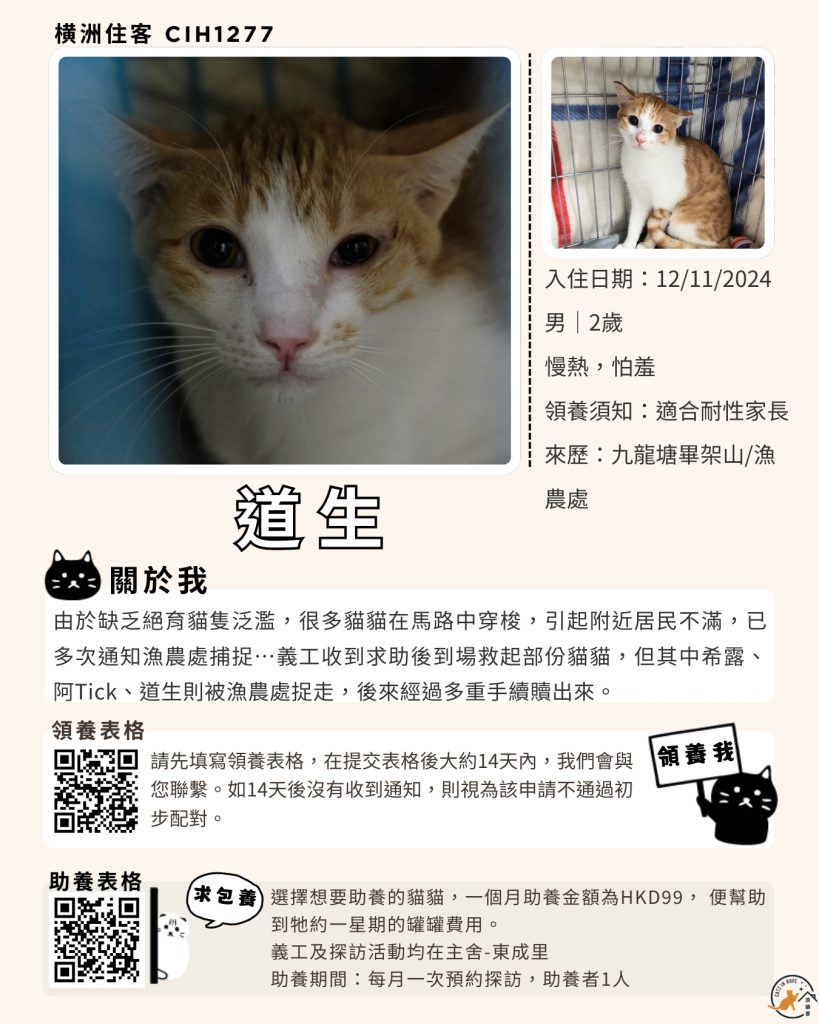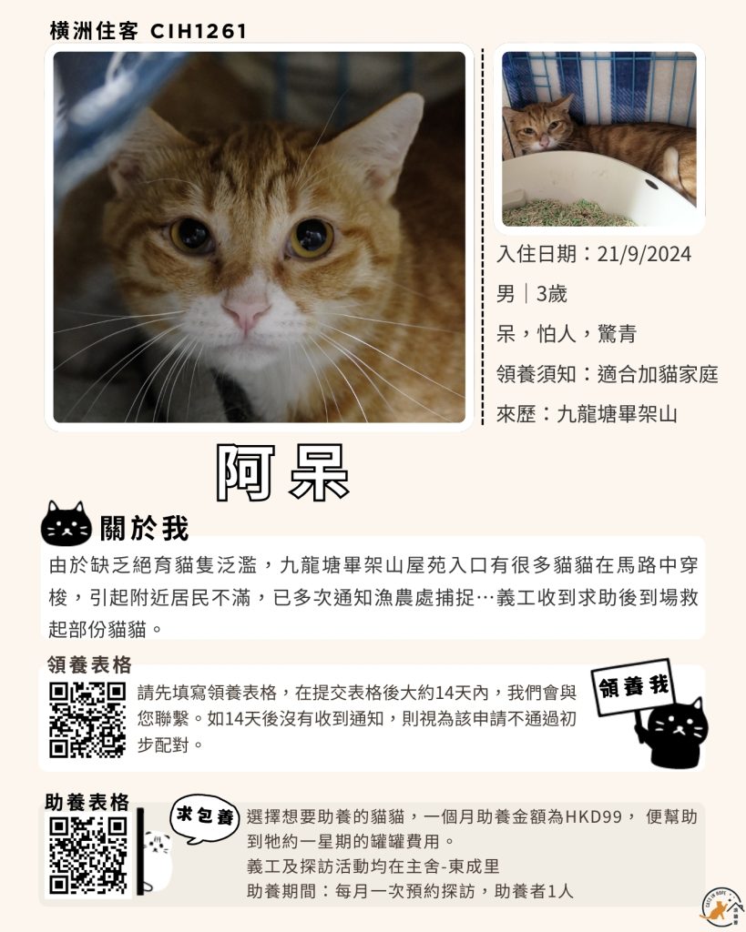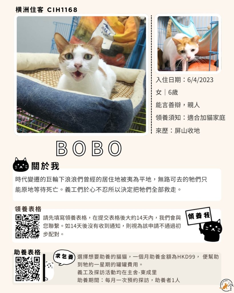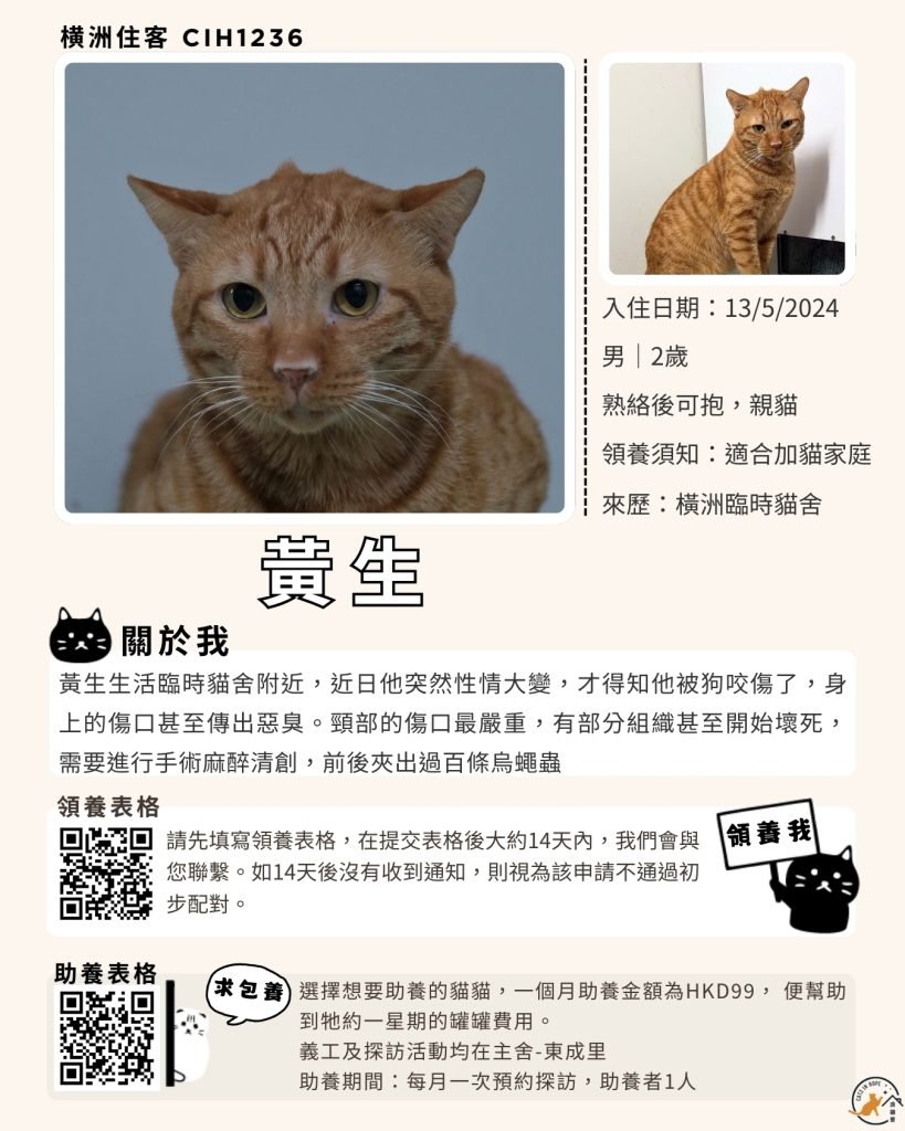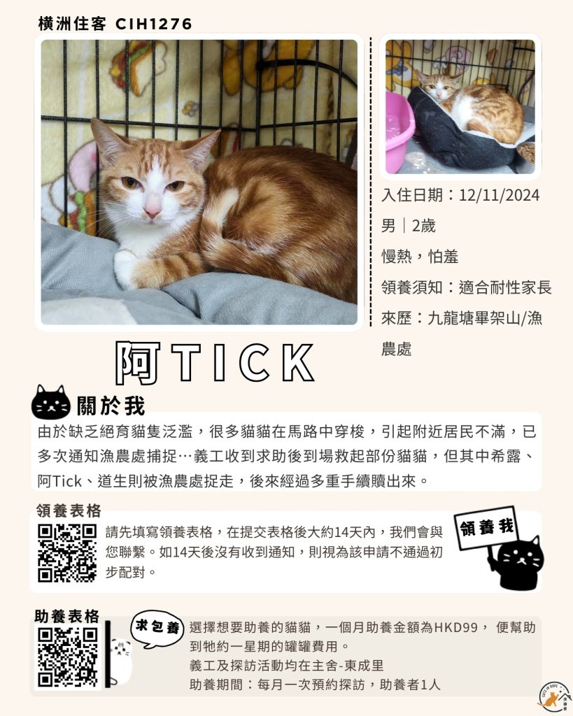 領養表格 助養表格 橫洲住客 橘色|橘白色 鹹蛋 奶油豬 瘦猛猛 閃閃 周星星 珠寶 金寶 飛飛 大眼仔 嘟嘟 TOYOTA 小雨 豬仔包 凱兒 三上 阿木 FOX BOBO 皮皮 右仔 MONKEY仔 黃生 小王子 阿嘈 阿呆 阿仔 阿TICK 道生 PIE PIE 金桔